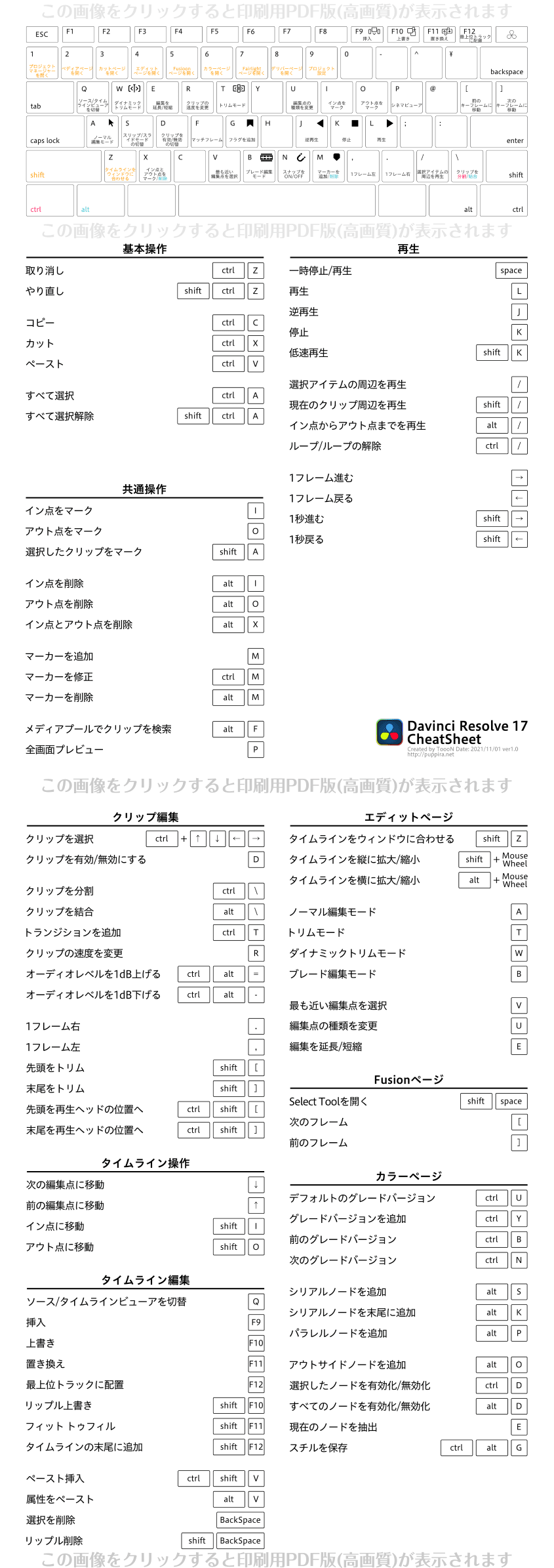 ダビンチ・リゾルブのショートカットキーは、編集の手間を省いて、作業を迅速に行うためのキーの組み合わせです。基本的なショートカットキーの中には、次のようなものがあります: