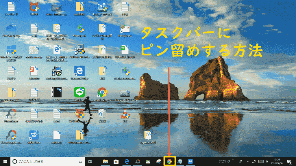デスクトップからGoogle Chromeのアイコンを直接タスクバーにドラッグすると、簡単にタスクバーにピン留めすることができます。