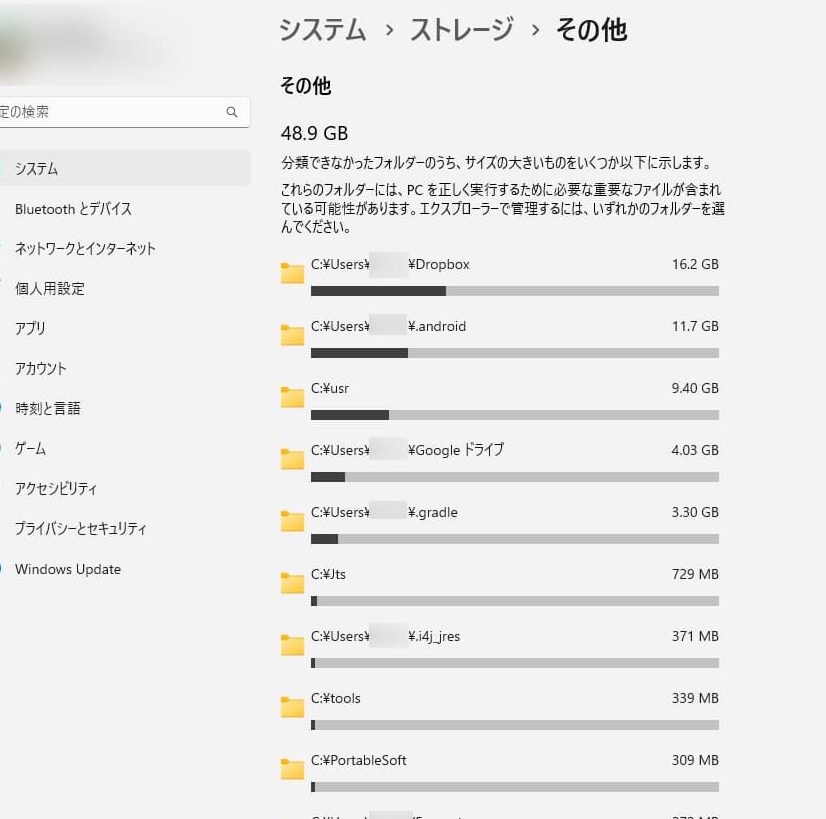容量が大きいフォルダを探すための具体的な手順は何ですか?