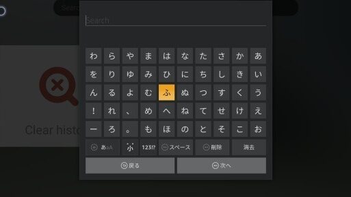 音声検索が利用できない時には、リモコンのタイピングによる検索が第一の手段となる。